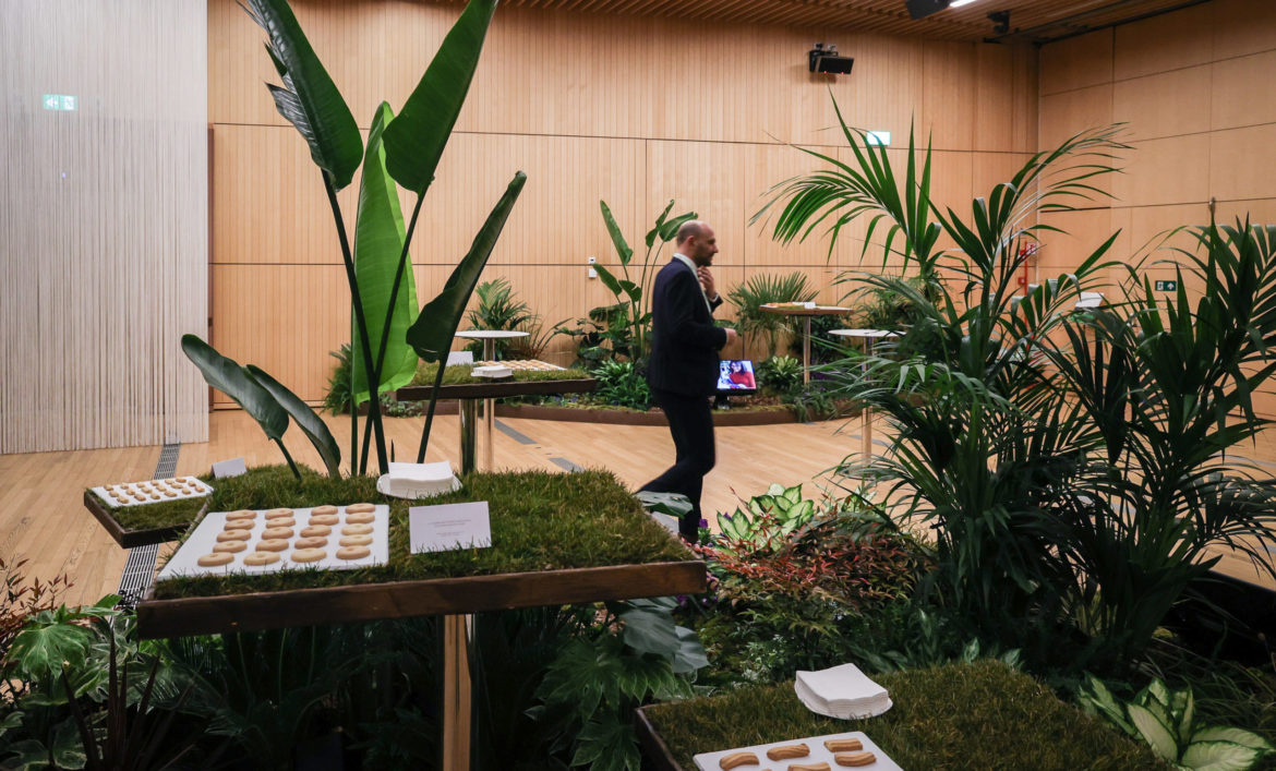 In a suggestive location all in green theme. With a nice busness monn ch to end the meeting session.